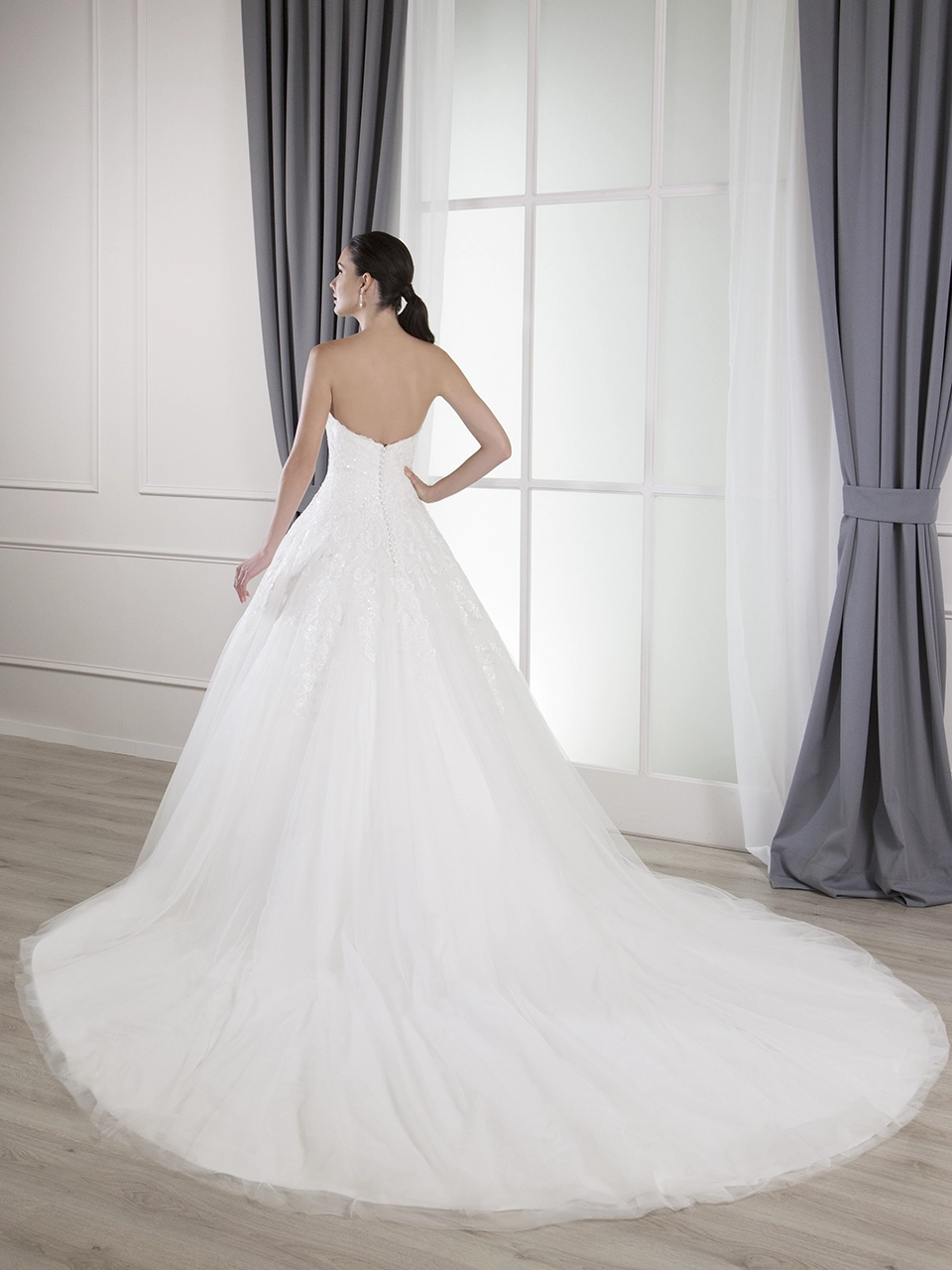 Corte princesa, strapless con escote corazón y profundidad de ilusión.